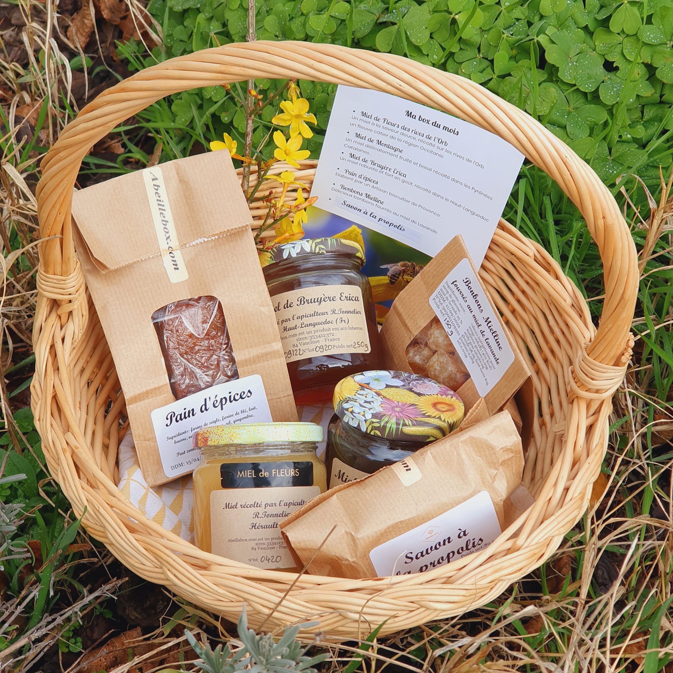 Des bonbons Mielline au miel de lavande et une portion de pain d’épices Abeille box :