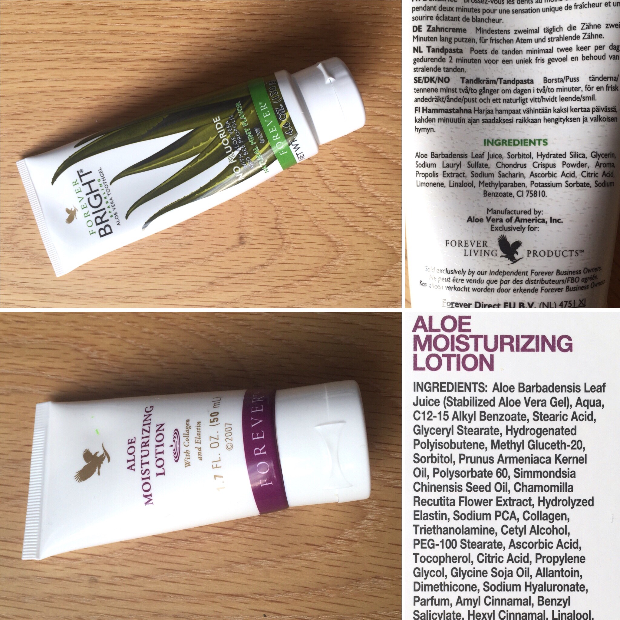 - Dentifrice et crème de la marque Forever (que je teste actuellement) : L’Aloe Vera arrive en 1ère position