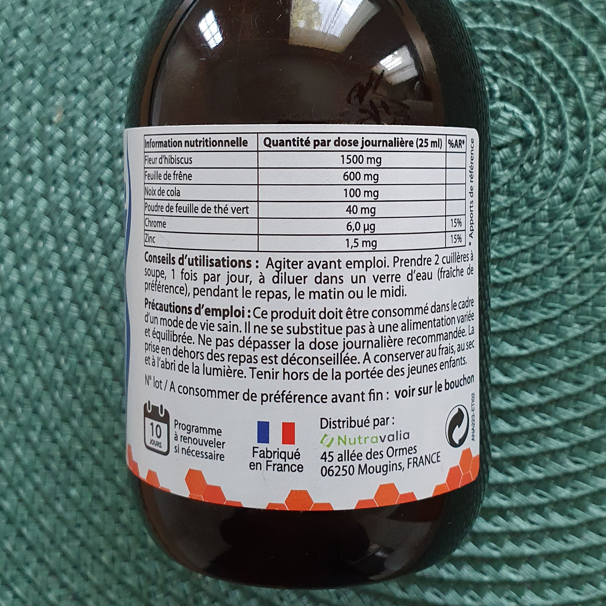- De l’hibiscus : draine l’organisme, facilite et stimule les fonctions d’éliminations de l’organisme, apporte une sensation de jambes légères et renforce l’organisme.