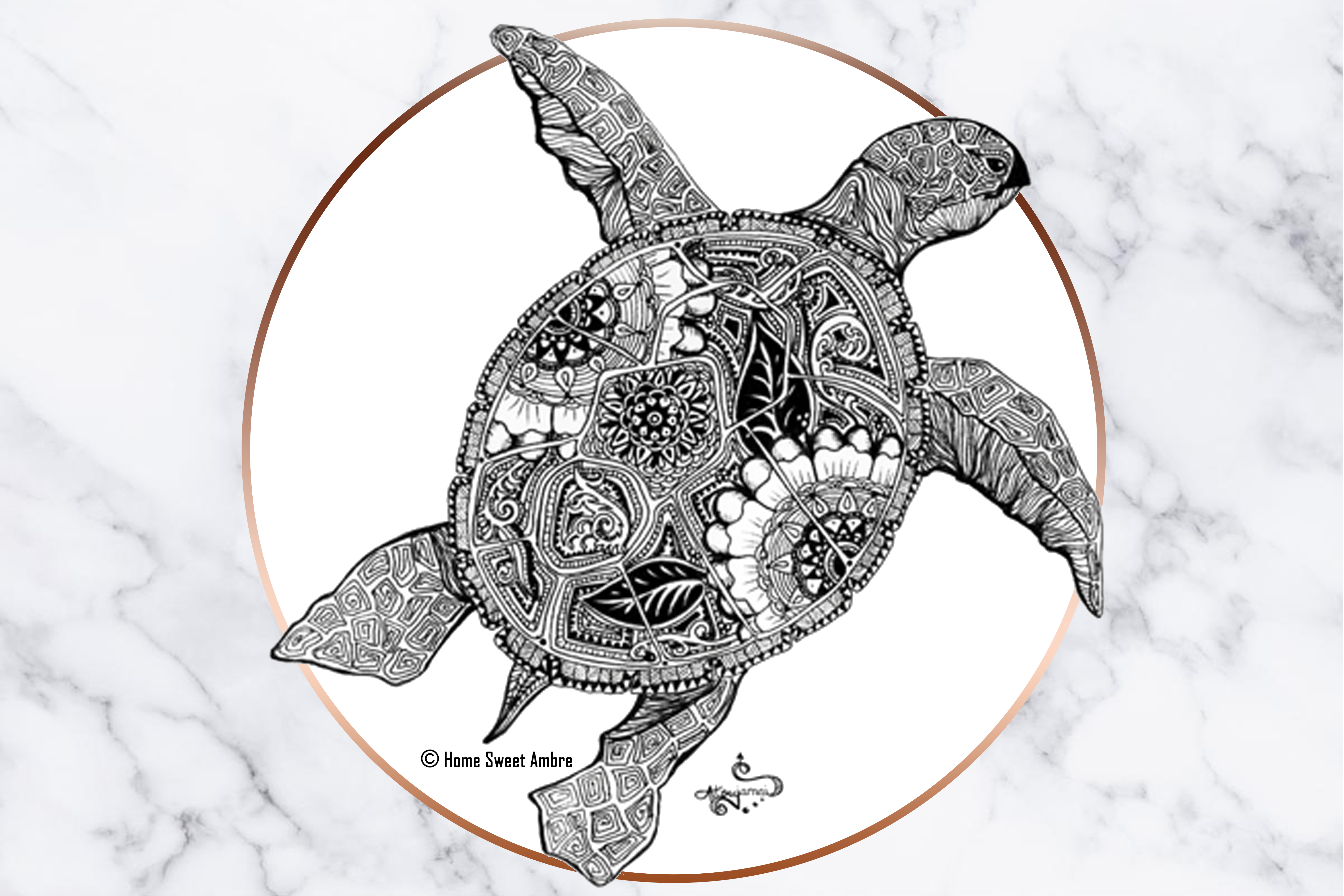 Bonjour et très bon début de semaine à toi si tu me lis. Voici pour partir du bon pied, le petit dessin du jour…attention roulement de tambour…c’est, c’est….??? « Non mais Ambre, t’as craqué? C’est déjà mentionné dans le titre!!! Une tortue ! « …euh visiblement ce n’était pas le bon pied pour moi ;).