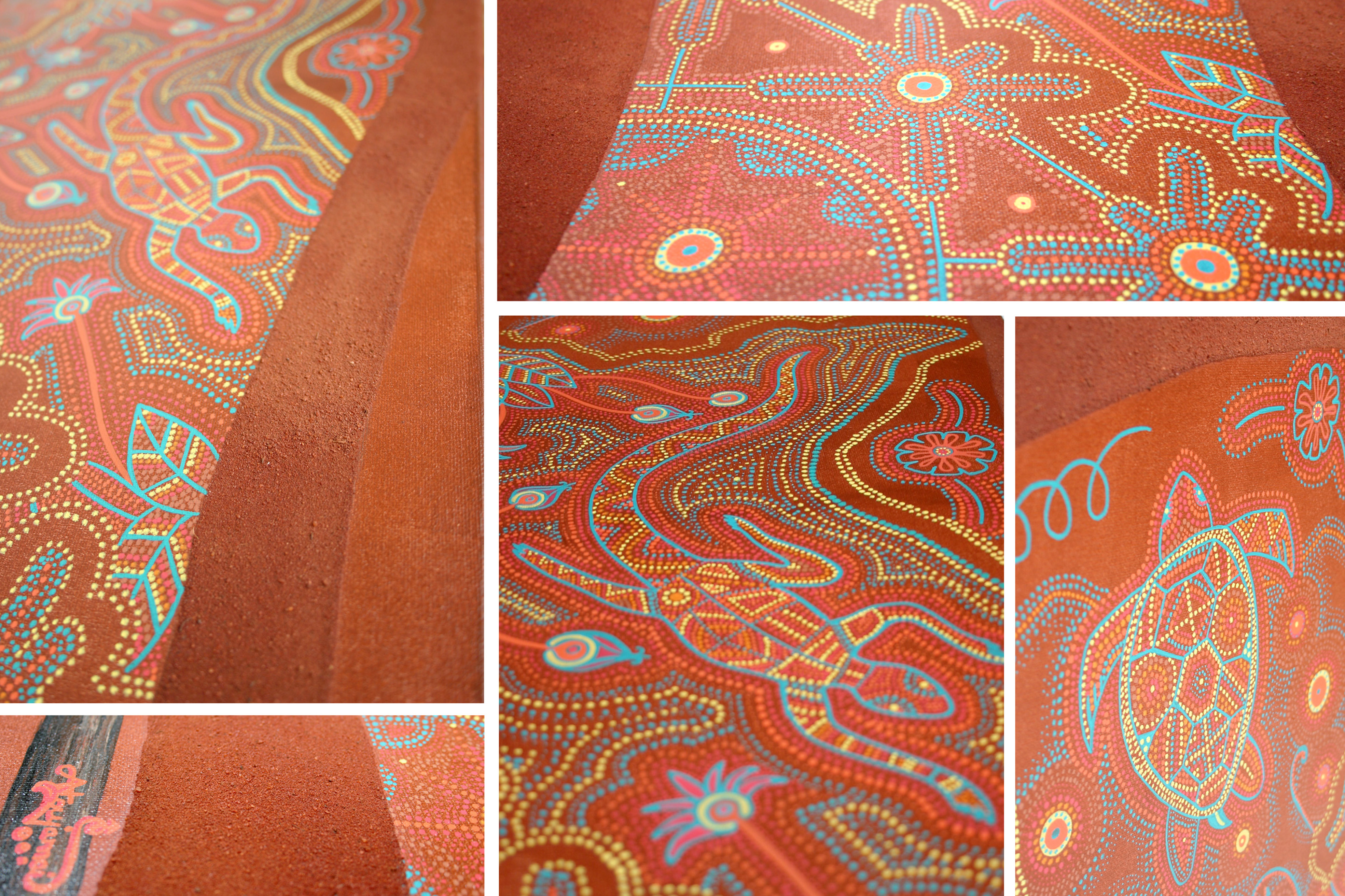 Mais en réalité ce n’est pas non plus la première fois que je représente des tortues notamment avec ce tableau à l’acrylique et pigments brutes dans une version plus simplifiée et totalement inspirée de l’art aborigène que j’adore (entre autres choses) :