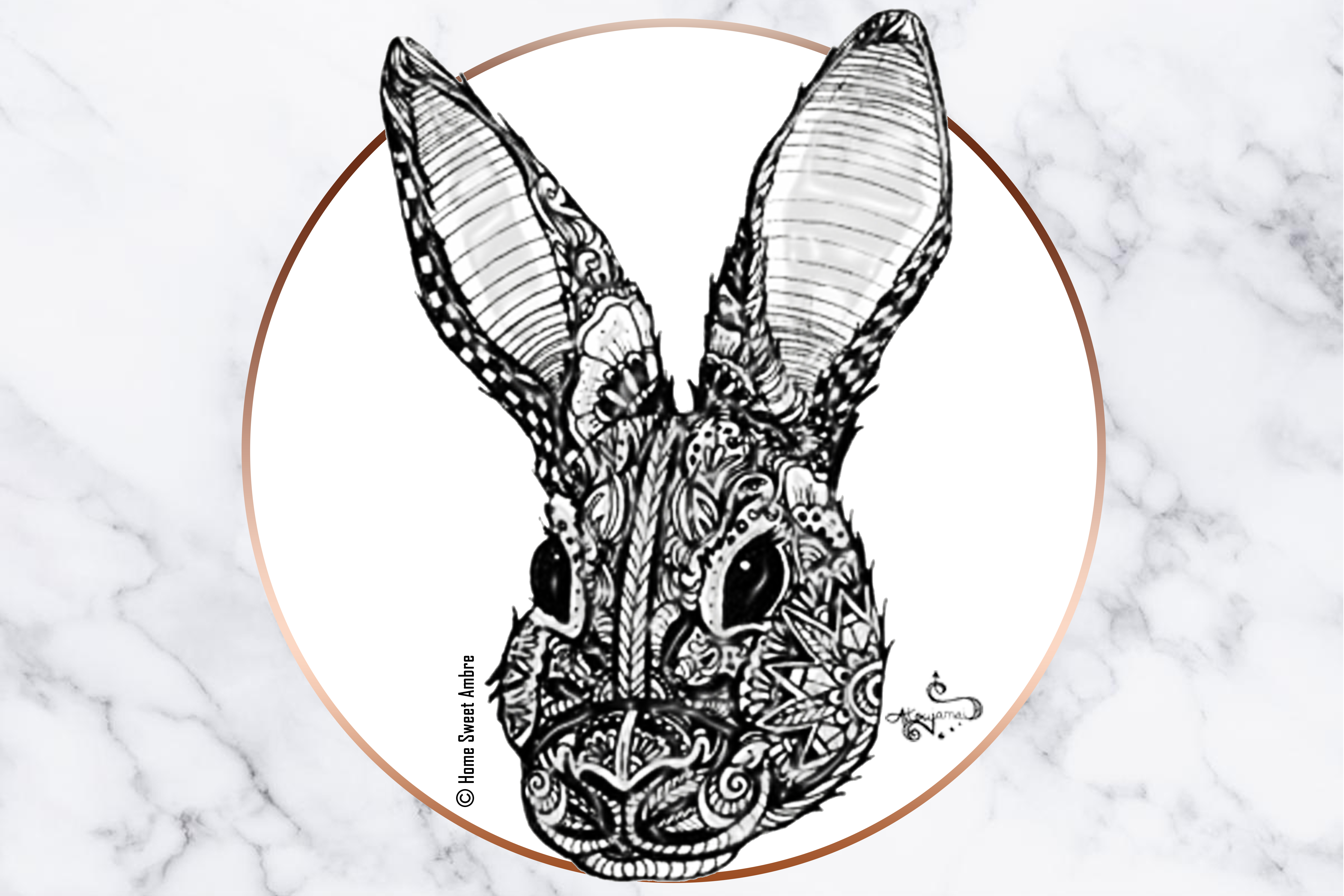 Dessin d’un lapin à l’encre noire