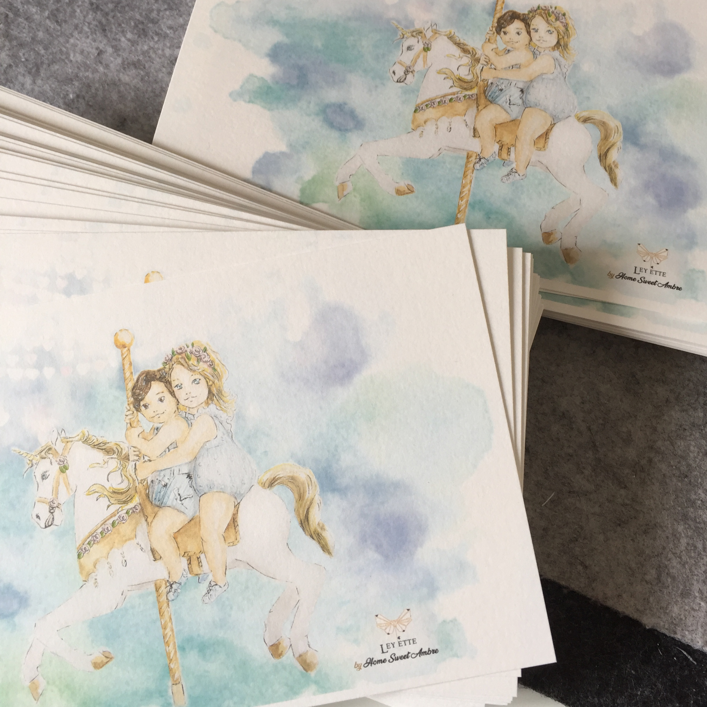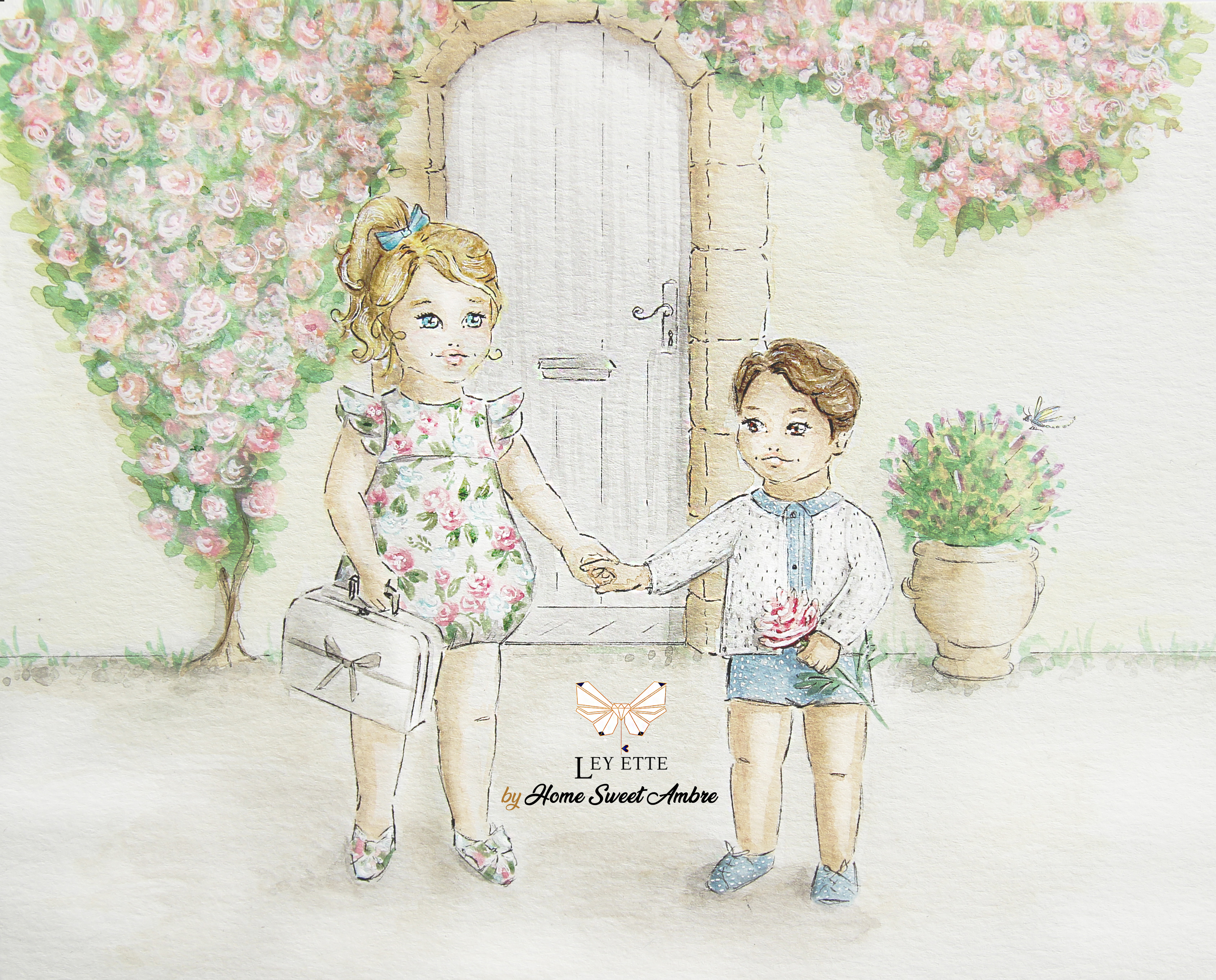 Je vous disais un peu plus haut que l’aventure ne s’arrêtait pas là, puisqu’en effet, vous pourrez retrouver chaque mois, l’une de mes aquarelles dans les valisettes « Ley Ette« . Celle-ci, sous la forme d’une carte, mettra systématiquement en scène des enfants revêtus des vêtements qui seront présents dans la valisette du mois suivant. Mini spoiler des plus sympathique qui vous permettra de créer une petite déco dans la chambre de bébé ou plus simplement d’écrire un mot.