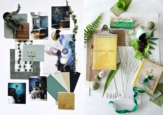 On va donc collecter ces inspirations qui, sous la forme de textes, de mots, d’images, de photographies, de textiles, d’échantillons de matières, de couleurs, d’objets par exemple, vont être assemblés à la manière d’un collage. L’ensemble va recréer une ambiance, un univers.