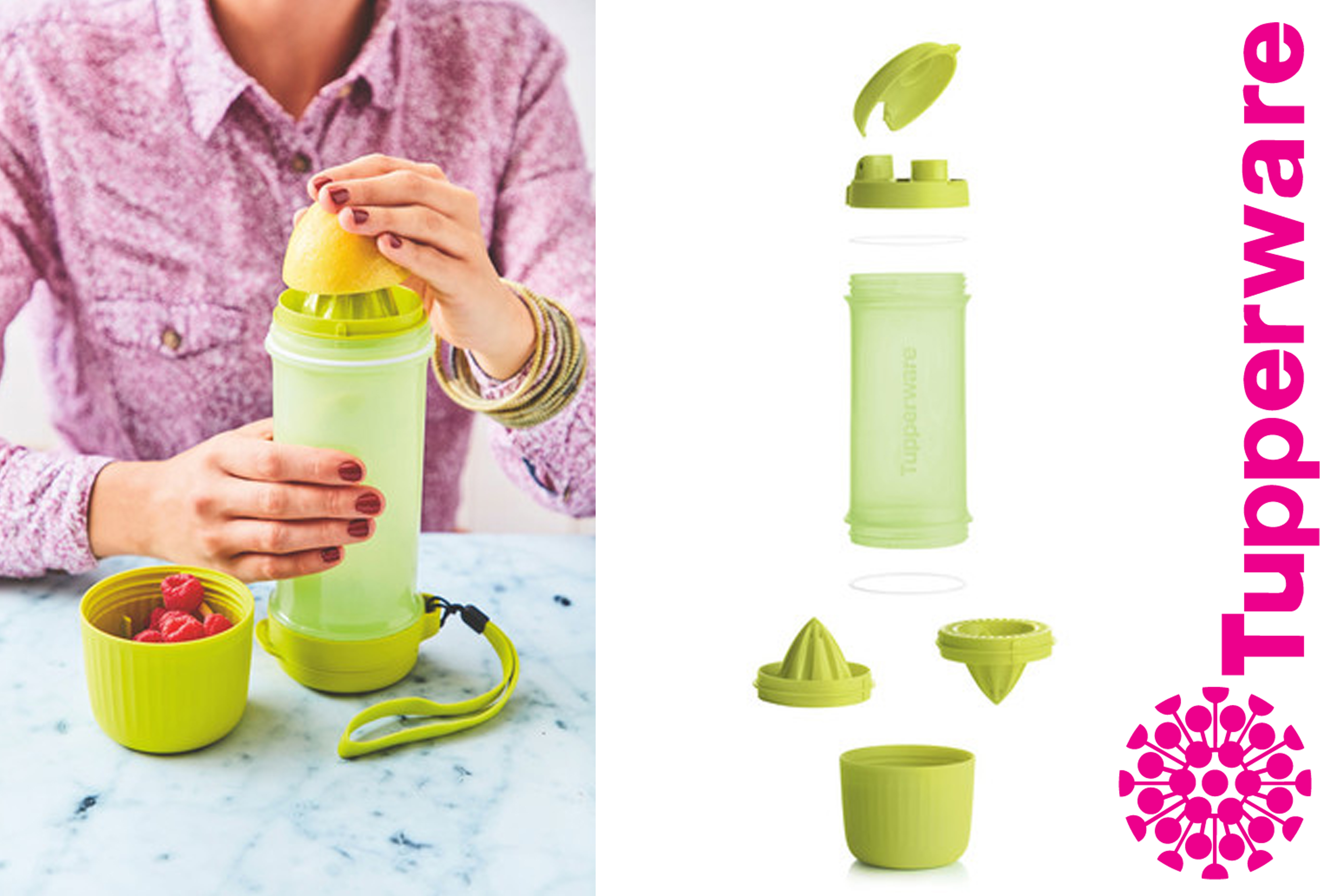 Les gourdes Tupperware sont parfaites pour cela. Pour ma part, je me suis laissée séduire par la gourde à infusion de 700 ml, présentée ci-dessus, qui est topissime. On peut infuser des fruits rouges en toute simplicité dans un compartiment prévu à cet effet ou presser un citron, une orange etc., grâce à un presse-agrumes incorporé à cette gourde. Rapide et pratique. Elle est à 20€50 et est de très bonne qualité, passant d’ailleurs très bien au lave-vaisselle. Et, petit plus, il y a une dragonne pour la tenir au poignet. Vous pourrez peut-être l’avoir en cadeau si vous organisez un événement Tupperware chez vous.