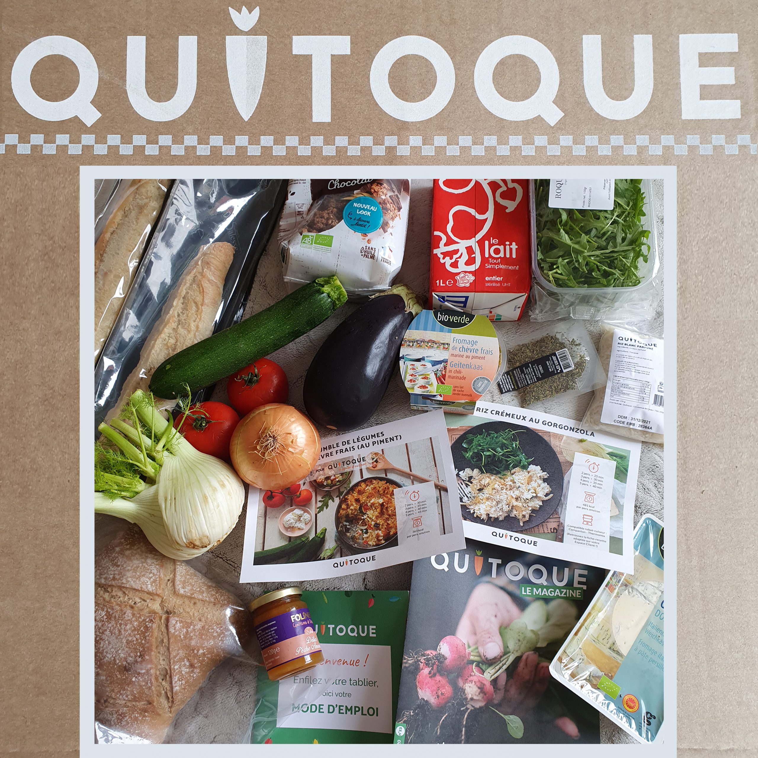 Aujourd’hui, on test le concept « QUITOQUE ». Des paniers à cuisiner personnalisables. En gros, vous choisissez, ils livrent, et vous cuisinez ! Idéal, à mon sens pour les personnes qui souhaitent découvrir de nouvelles recettes et saveurs, mais qui n’ont ni le temps de chercher d’idées de recettes, ni d’aller courir en magasin pour trouver tous les ingrédients.