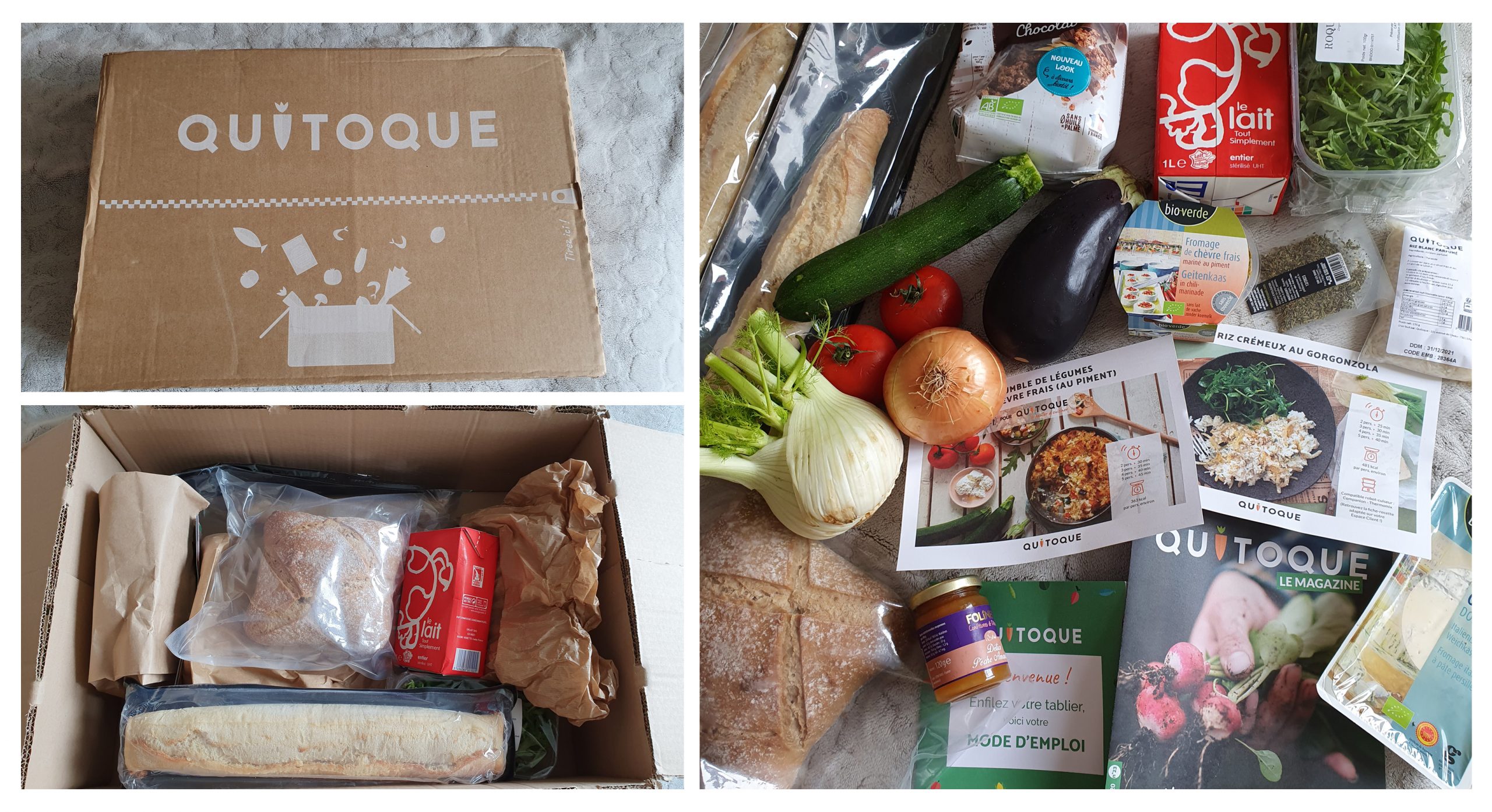 De plus, il y avait un petit « Quitoque le magazine », avec des recettes anti-gaspi et un visuel des recettes à venir. Un petit guide de fonctionnement du concept était aussi présent.