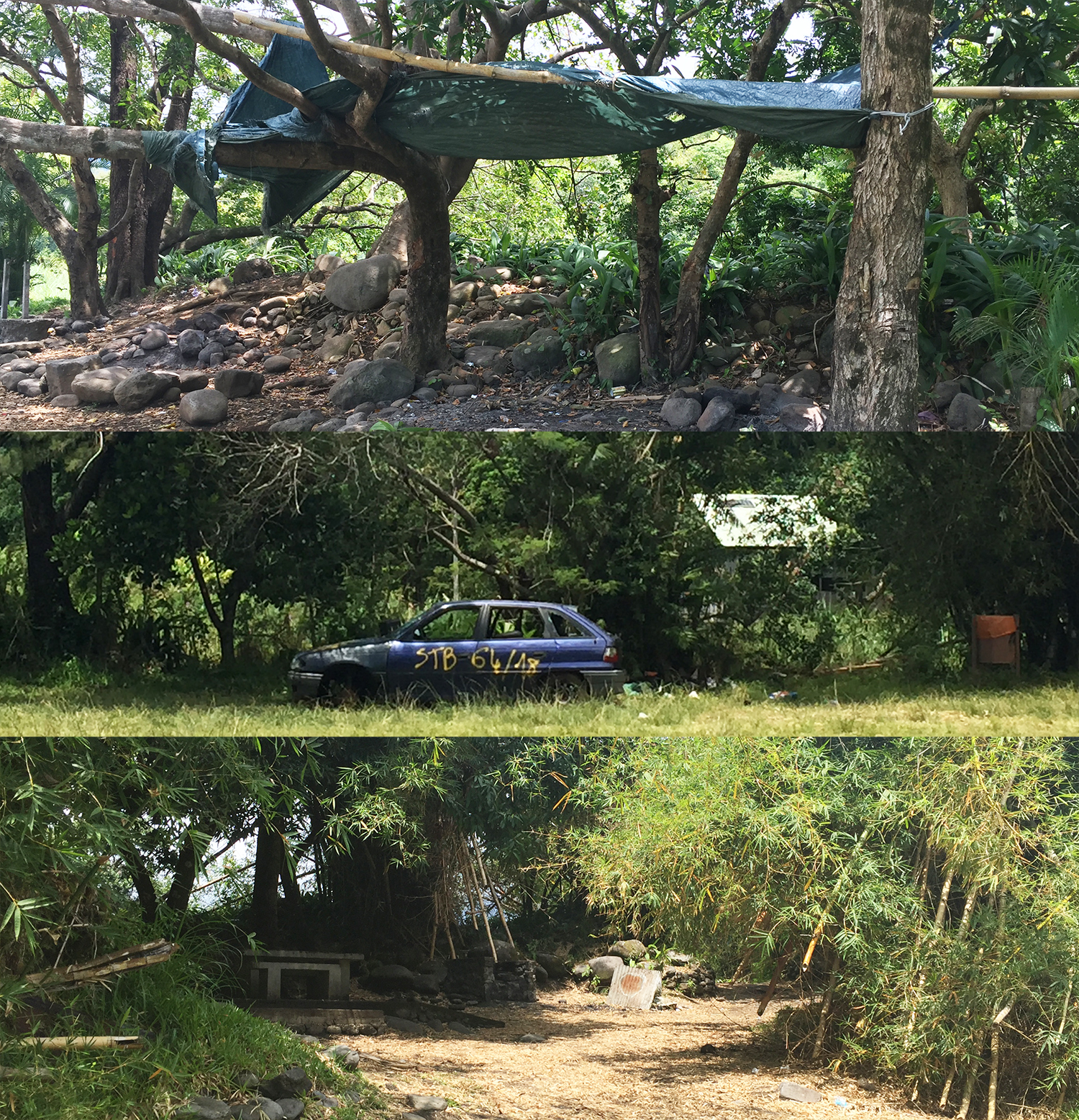Pour le Bassin Mangue, à Saint-Benoît, la réalité était tout autre. L’endroit s’était transformé en grande zone de squat où se mêlaient détritus et voiture abandonnée. Ses abords n’étaient pas entretenus et ses hautes herbes dissimulaient la beauté des lieux. Qui, on le sent bien, avaient dû être accueillants si l’on en croit son espace barbecue et ses très hauts bambous… Aujourd’hui saccagés. C’est cela aussi, la réalité des voyages.