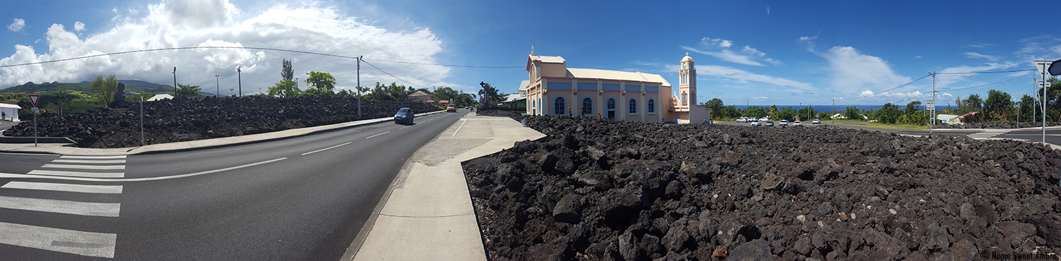 À Sainte-Rose, vous trouverez une église ayant réchappé d’une coulée de lave en 1977. La lave avait alors contourné le bâtiment et n’était rentrée que d’environ 3 mètres dans la nef.